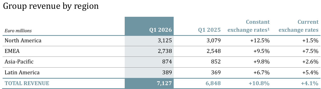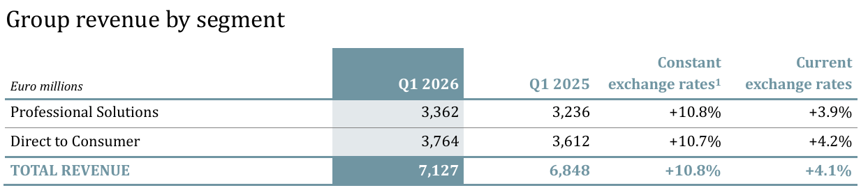 该区域录得营收3.89亿欧元,按固定汇率计算增长6.7%,(按当前汇率计算:+5.4%),专业解决方案与直营业务均表现正向。