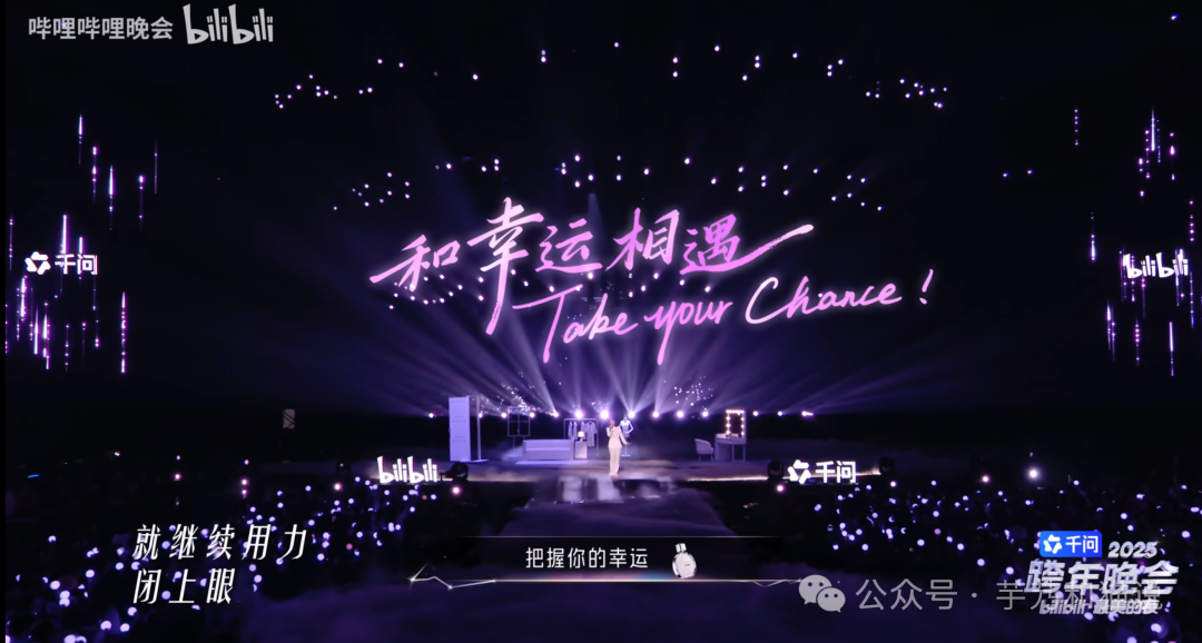 香奈儿在B站的最新出手,落在2025跨年晚会上。品牌的呈现方式颇为耐人寻味——香奈儿没有选择常规的硬广贴片或明星口播,而是用了一种“虚实两条线”的植入:实线是单依纯舞台上的一个梳妆台,一个不经意的特写,把新品 Chance 香水放在看似日常的生活场景里;虚线则是整首歌的情境打造——歌词的悄然变化、淡紫色光影氛围的铺排,slogan“Take Your Chance”自然融入视觉。