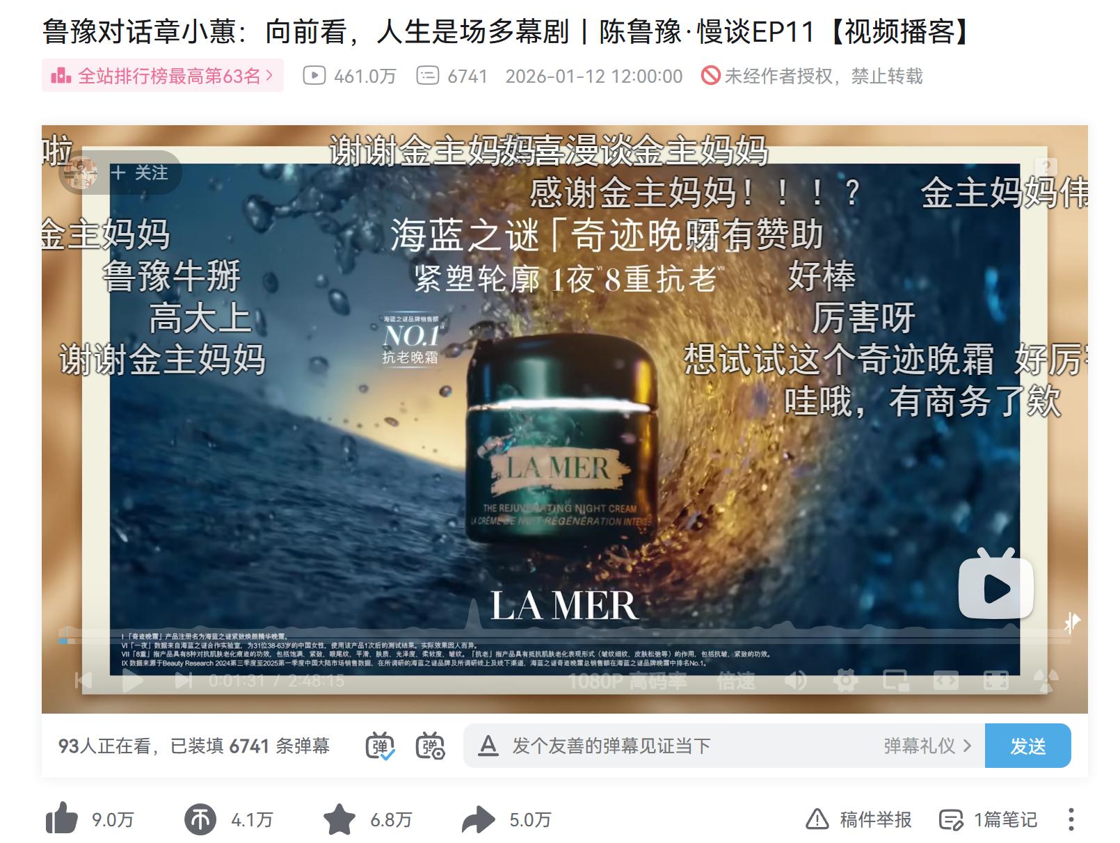 这也解释了行业里那个被频繁提起的现象——为什么鲁豫视频播客的档期被品牌方排满。以海蓝之谜×《鲁豫·慢谈》章小蕙期为例,一场人文浓度极高的深度对谈,追溯了章小蕙从香港名媛到带货女王的人生路径。全网总曝光超2亿。