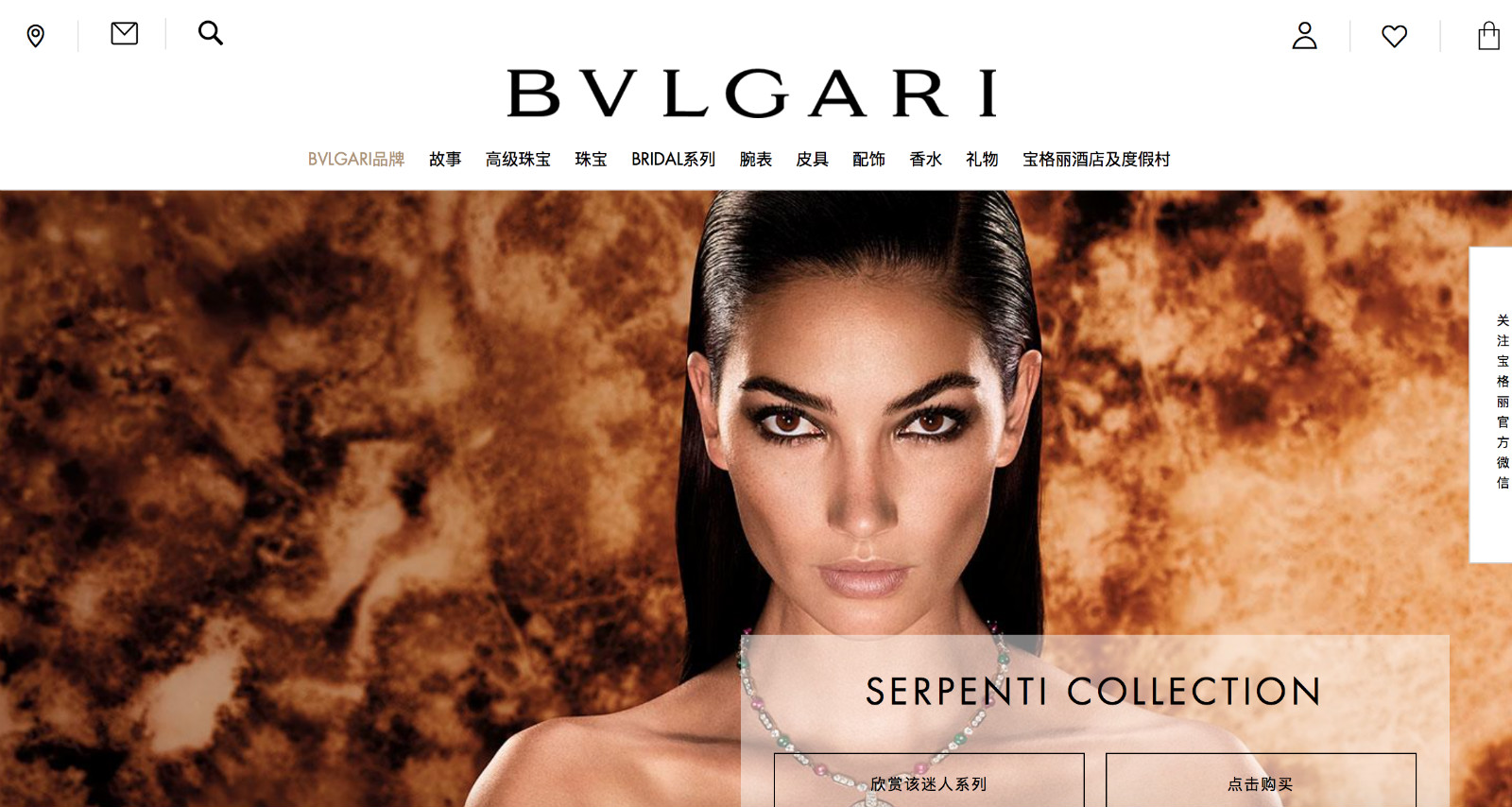 打开宝格丽中国官方线上精品店,可以看到除宝格丽高级珠宝腕表系列外的几乎所有产品,涵盖珠宝、腕表、皮具、配饰和香水等品类,为中国消费者提供了全方位的购物体验。